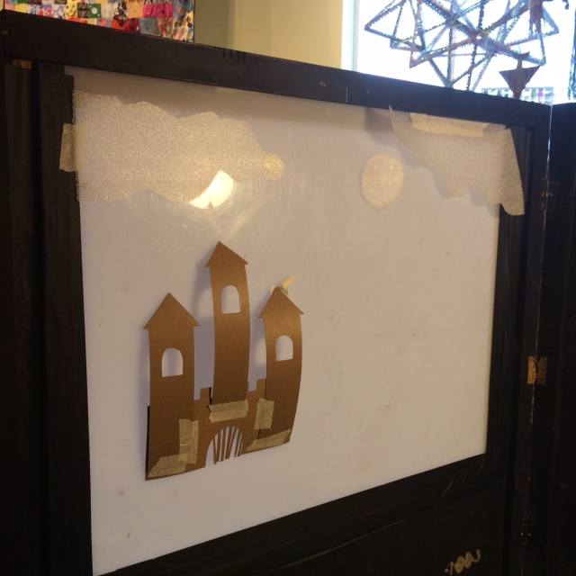 Back of the shadow puppet theater in the MakeShop at the Children’s Museum of Pittsburgh.