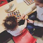 Result: When there is physical space at the table – an adult-sized space near their child’s chair – parents tend to stay close and engage with children while squatting next to them to be on the same eye level. Once that position becomes uncomfortable, often the adult will opt to sit in the child-sized chair, with the child on their lap–a position that would not be possible if children were sitting closer together. In these instances, parents are asking their children questions and watching them work, but usually don’t do the activity for their children, because while it’s physically comfortable enough to be present, it is too physically uncomfortable to try to do the activity in the place of the child while hovering.