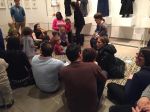 Museum and arts educators are called upon to create meaningful experiences for families. After weeks or months of careful planning and thinking through of educational goals, the reality is often chaotic – for example, a program for 5-9 year olds attended by 3 and 4 year olds. In the real world, it becomes difficult to evaluate just how meaningful the experience was for families. I have begun to use these often hectic, unpredictable education programs as spaces for experimentation, in order to learn about parent and child behavior in these settings.