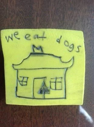 During one Placeworks field trip, 6th grade students were asked to create an image inspired by some aspect of Chinese culture. This was found by the teaching artist after the students had left: