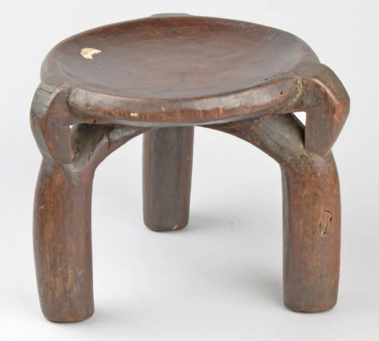 Three-legged wooden stool from Zimbabwe, from the collection of the British Museum.